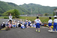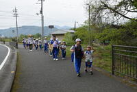 4月28日(月)新入生歓迎遠足を行いました。行き先は旧戸原小学校でした。約3㎞の道のりを、12の縦割り班に分かれてポイントラリーを楽しみながら歩きました。