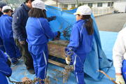 3年生が、発酵食品を作るボランティアグループの方にご協力をいただいて、春先から畑で育ててきた大豆の脱穀作業をしました。